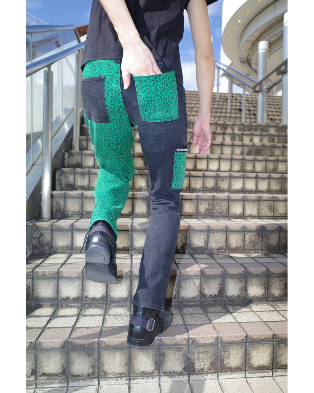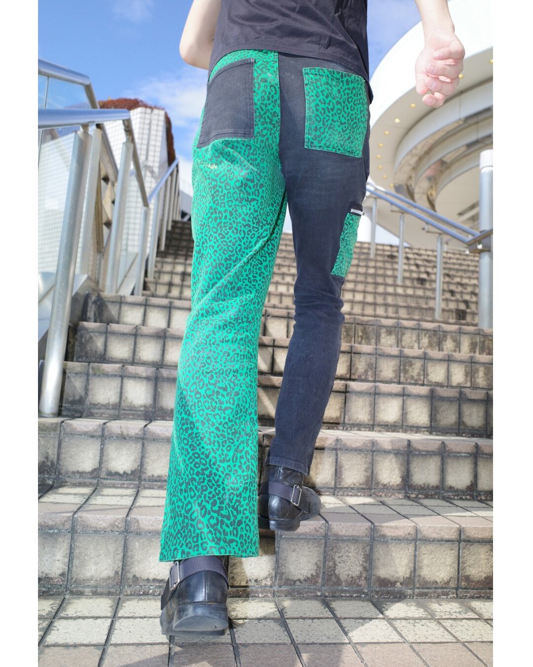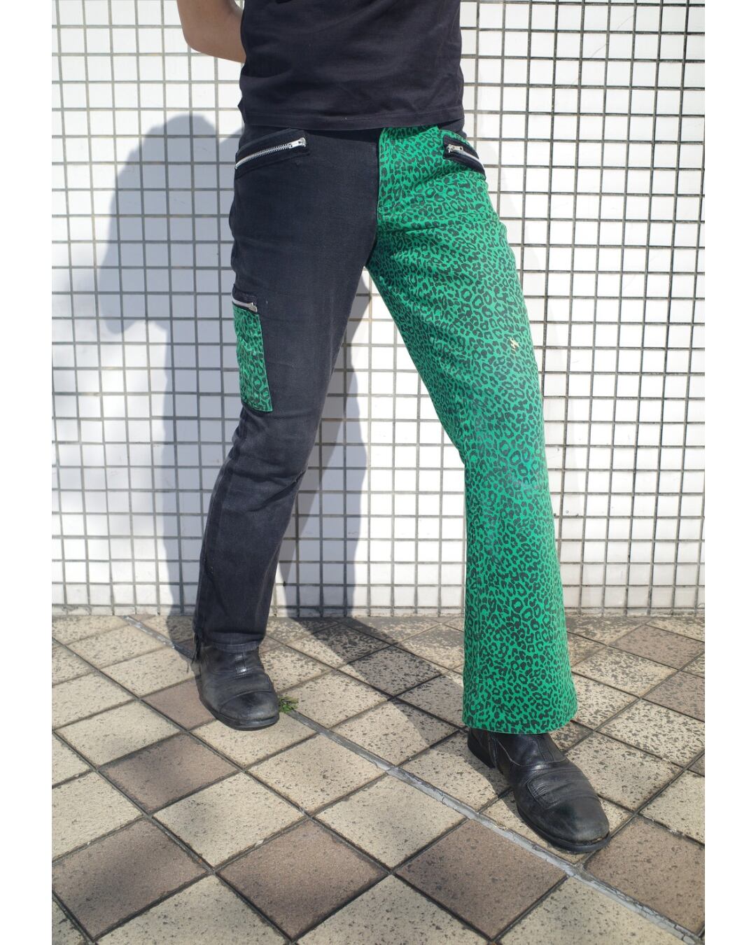 左右でシルエットの異なる変わったパンツ。