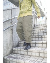 七分丈のパンツ。