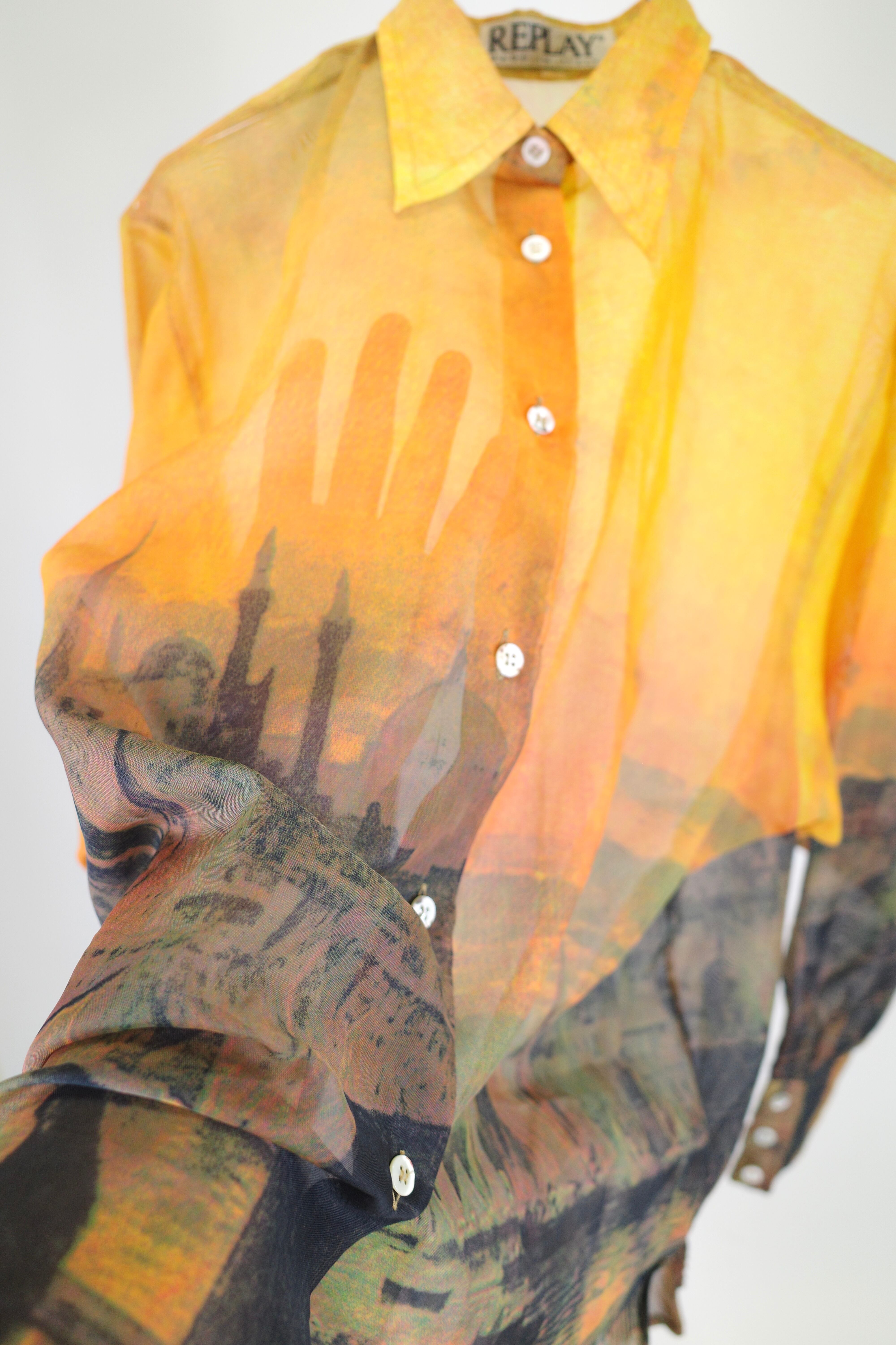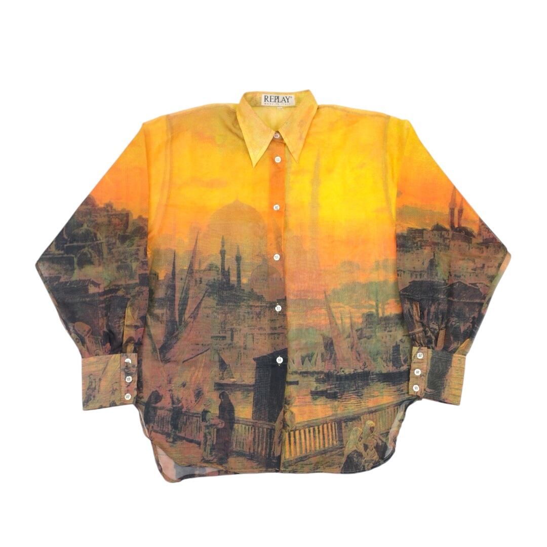 90s replay transfer print sheer l/s shirt(made in ltaly)