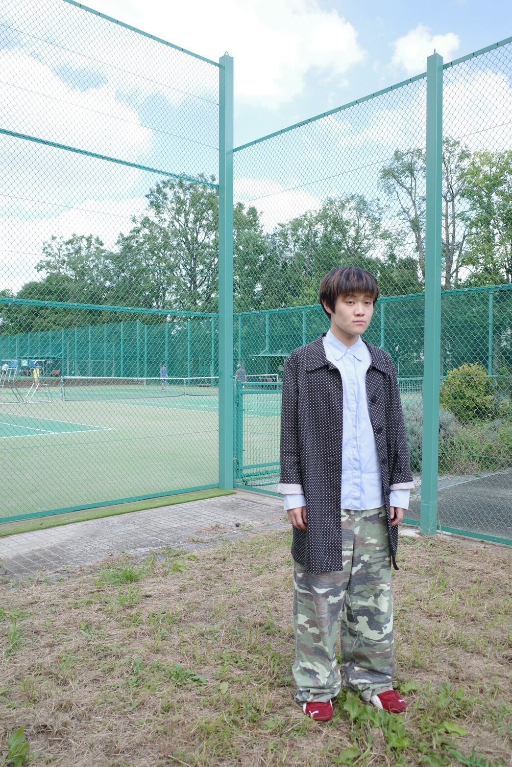 細かなドット柄と大きなボタンが特徴的です。